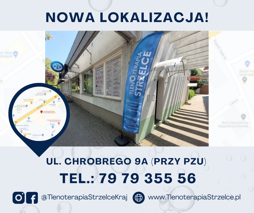 TlenoterapiaStrzelce to kameralne miejsce w Strzelcach Krajeńskich, gdzie w ciszy od zgiełku ulic możesz skorzystać z zalet które daje tlenoterapia hiperbaryczna. Dzięki zabiegom leczniczym zatroszczysz się o swoje zdrowie, zregenerujesz się i złapiesz oddech! Przebywając w komorze hiperbarycznej, otrzymuje się tlen o wysokim stężeniu w warunkach podwyższonego ciśnienia. Pozwala to na skuteczniejsze przedostawanie się tlenu do obszarów mniej ukrwionych lub miejsc gdzie jest on niezbędny. Zabiegi w komorze hiperbarycznej stymulują organizm. Tlen odżywia niedotlenione komórki, a co za tym idzie – wzmacnia układ immunologiczny i pomaga wrócić do zdrowia.